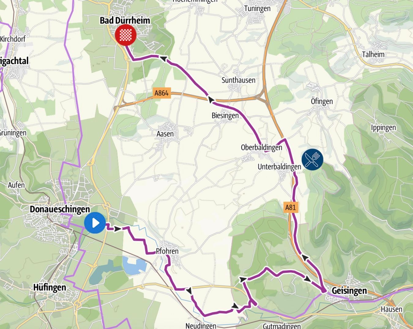 Nach einer schnellen Abfahrt in Richtung Geisingen folgt ein knapp 7 Kilometer langes Teilstück mit kleinen Wellen vorbei an Unterbaldingen. Nach 23 Kilometern erreicht man die Ortsmitte von Oberbaldingen und fährt auf den Spuren des RiderMan Einzelzeitfahrens über die Hirschhalde in Richtung Bad Dürrheim. Von der Hirschhalde bis zur Flamme Rouge erreicht man die Höchstgeschwindigkeit bei diesem Zeitfahren, bevor es auf den letzten 1.000 Metern über eine kleine Welle nach 30,6 Kilometern und 240 Höhenmetern zum Ziel in die Salinenstraße geht.