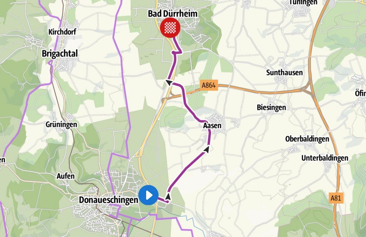 STRECKE & RUNDKURS AB START IN BAD DÜRRHEIM